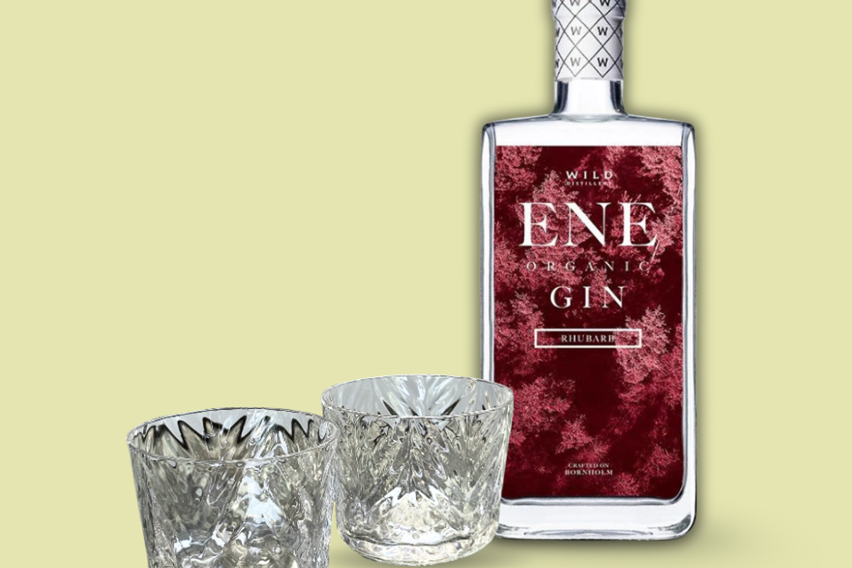 Til glassene hører ENE Rabarber Gin fra Wild Distillery – en frisk og let syrlig gin, der bringer sommeren direkte i glasset. Prøv den i en Rabarber Gin & Tonic med en sød tonic og et strejf af tørrede rabarberstængler, eller i en Rabarber Sour, hvor ginnens friske nuancer virkelig får lov at træde frem.