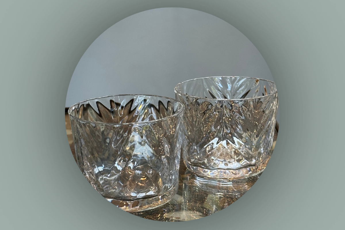 Disse små fine sildebens-multiglas er smarte, fordi de kan have så mange funktioner. De kan bruges som whiskyglas, til lidt knas, morgenmad, dessert - eller de kan give en hyggelig stemning på spisebordet med et lille fyrfadslys i.