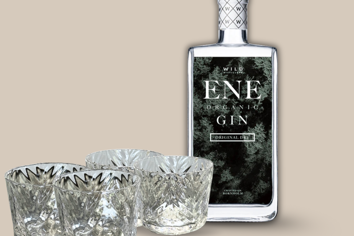 Sammen med glassene får du ENE Organic Gin – Original Dry fra Wild Distillery. En økologisk gin med en ren og balanceret smag, der gør den perfekt til enhver gin-drink. Prøv den i en klassisk Gin & Tonic med et strejf af citron eller lime, eller i cocktails som Clover Club, Tom Collins eller Greyhound, hvor dens klare smagsprofil virkelig kommer til sin ret.