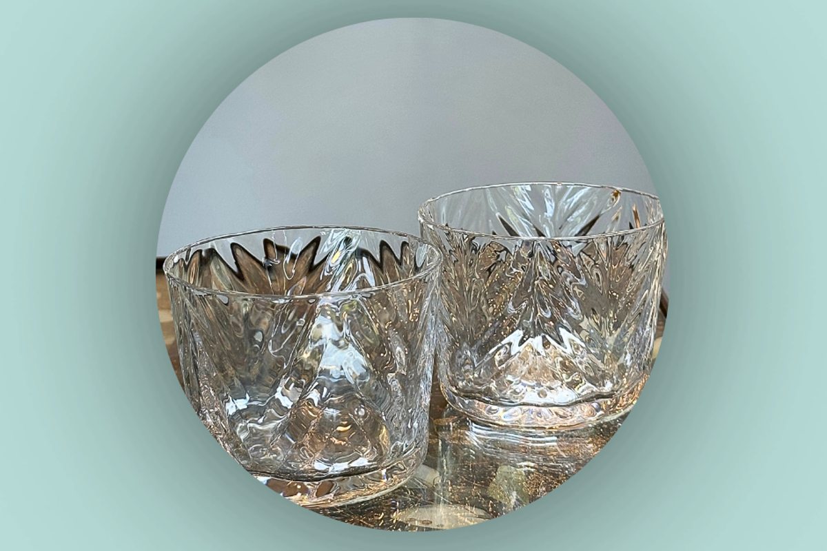Disse små fine sildebens-multiglas er smarte, fordi de kan have så mange funktioner. De kan bruges som whiskyglas, til lidt knas, morgenmad, dessert - eller de kan give en hyggelig stemning på spisebordet med et lille fyrfadslys i.