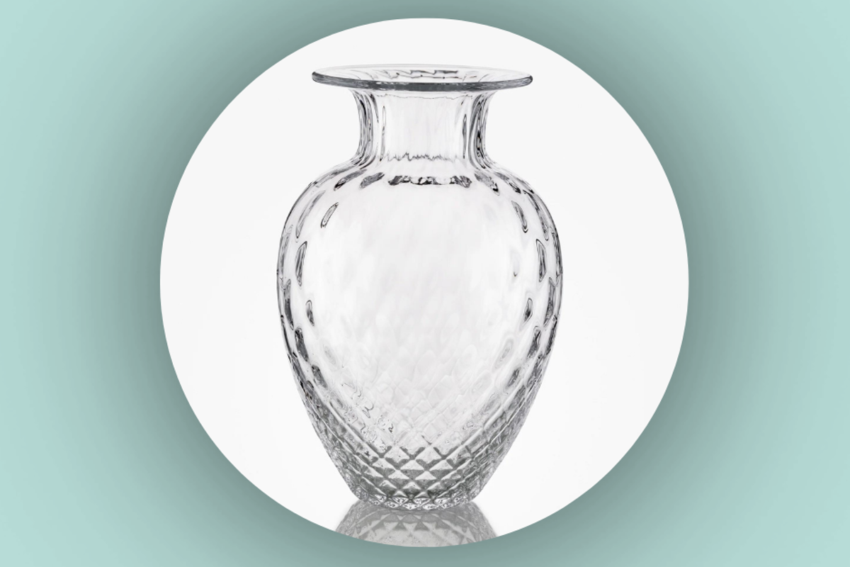 En mundblæst vase med et blødt optisk mønster som en ananas.
