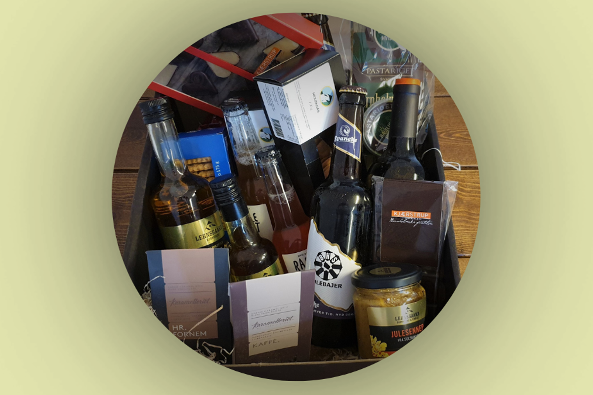 I denne finder du bl.a. Lehnsgaard olie, lækker chokolade fra Kjærstrup, bornholmske småkager fra Bager Mortensen og meget mere.