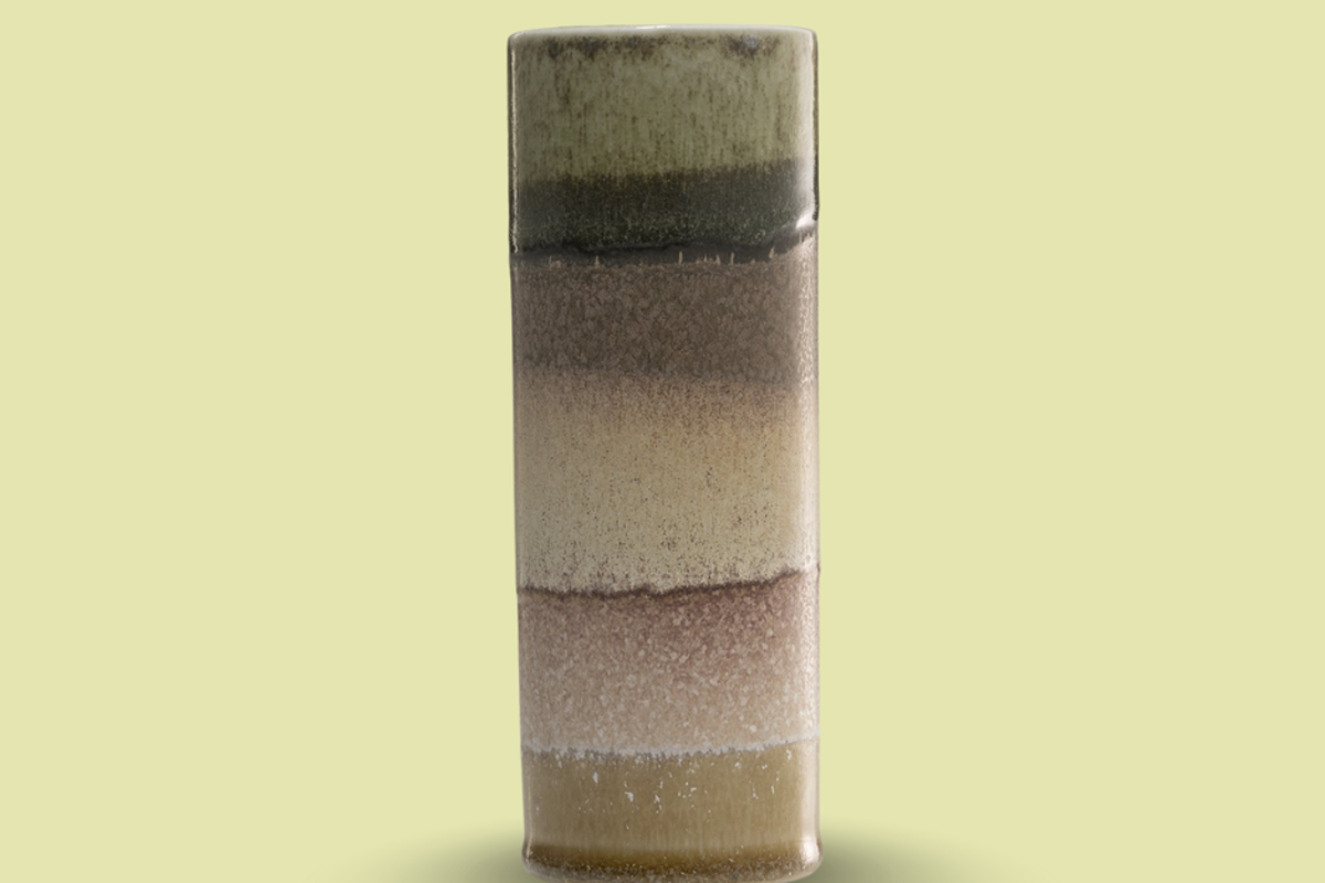 Vasen er dyppet i glasur af flere omgange og nogle steder med flere lag. Under brændingen smelter lagene af glasur sammen og der opstår en kemisk forbindelse, som giver et uforudsigeligt og helt unikt produkt.