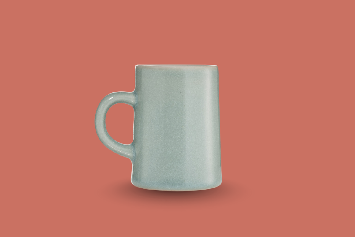 Nu kan kaffekoppen også fås med den blå "celadonglasur", som klæder den klassiske form.
