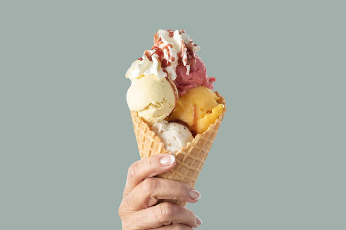 Kjærstrup - 4 stk. Flødesoftice med topping eller 2 kugler med topping
