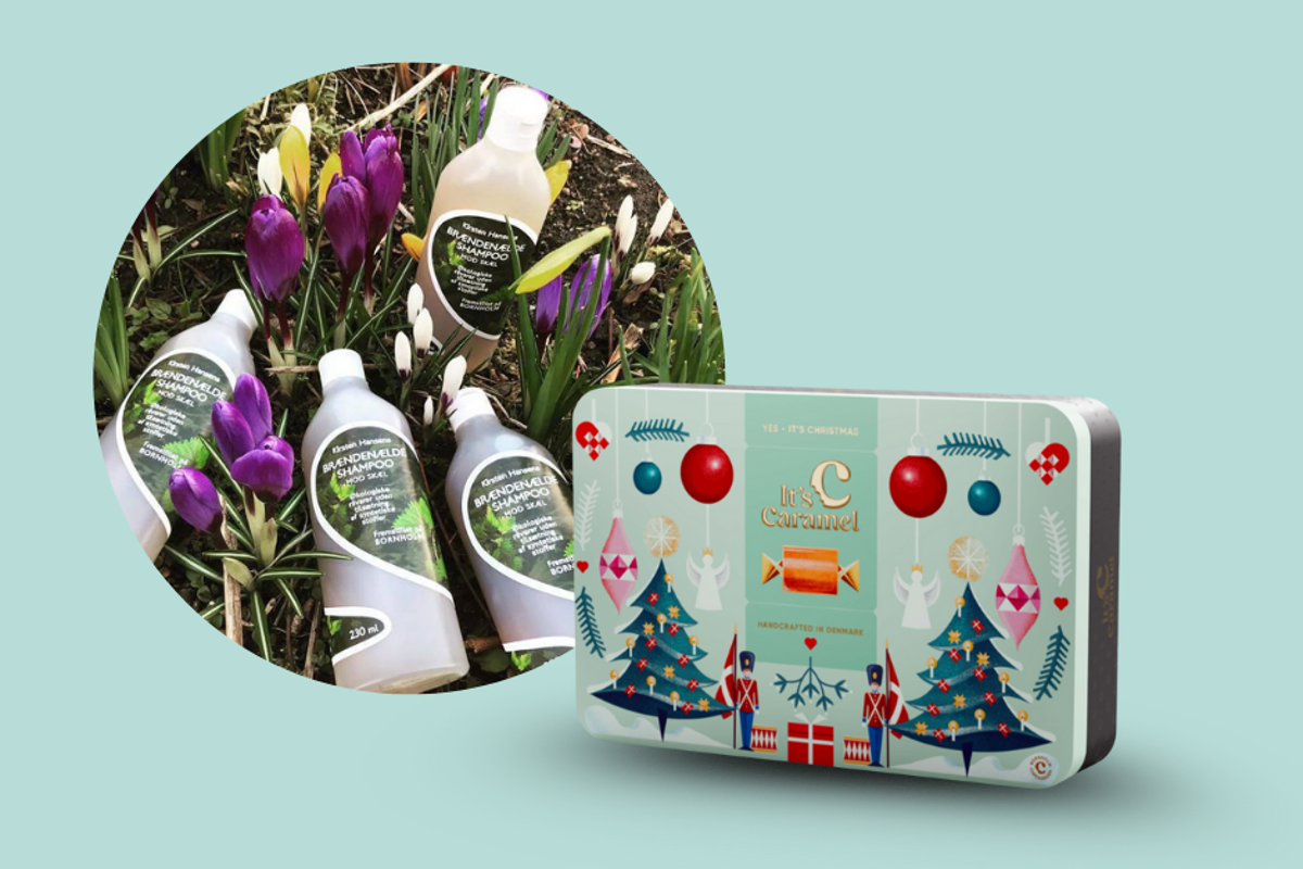 Her får du 1 stk Shampoo og 1 stk balsam plus en lækker tindåse fyldt med lækre karameller