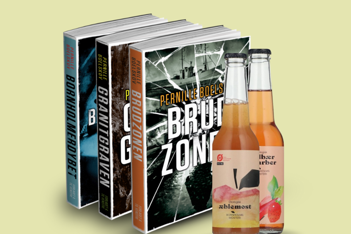 Her får du en gavepakke, der samler det bedste fra Bornholm – både til læsehyggen og til glasset.