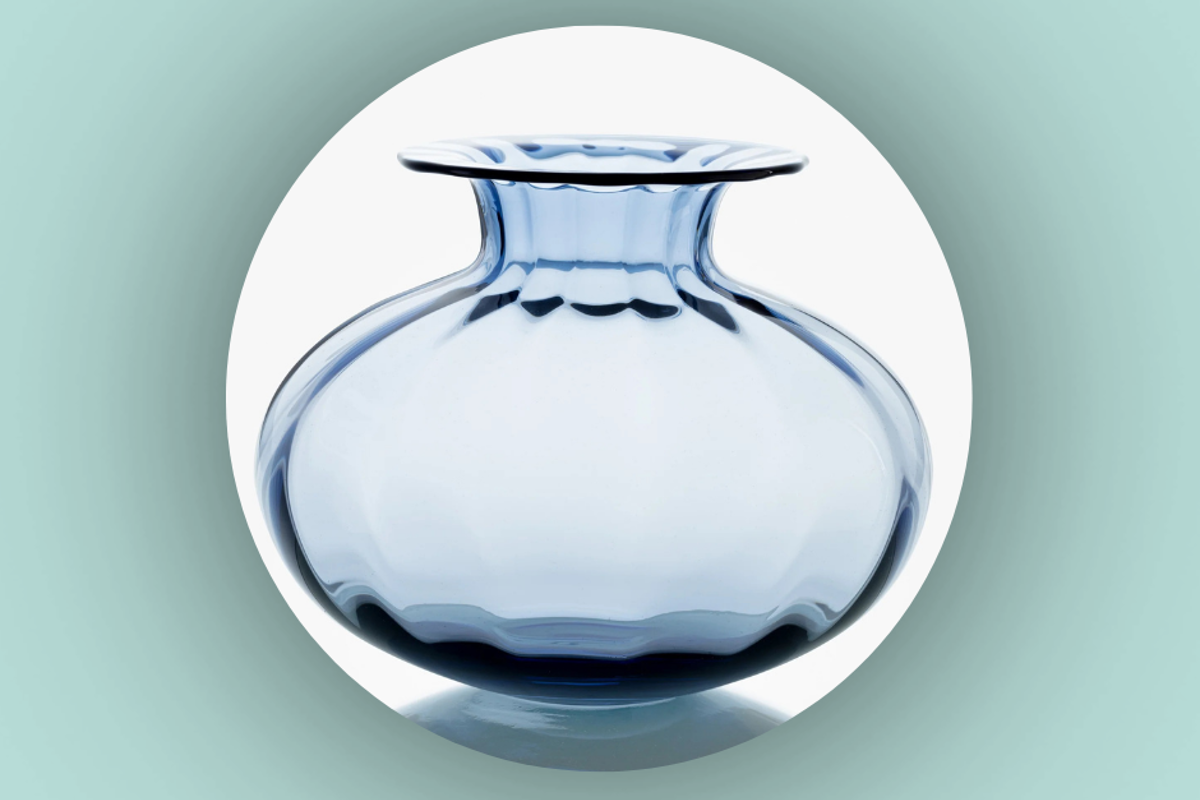En mundblæst vase med et blødt optisk mønster.